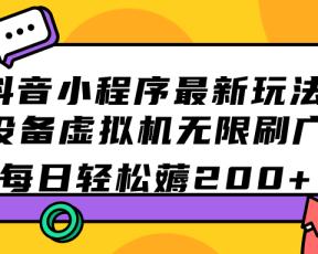 抖音小程序最新玩法 单设备虚拟机无限刷广告 每日轻松薅200
