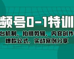 视频号0-1特训营:平台机制、拍摄剪辑、内容创作、爆款公式,实战案例分享
