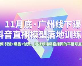 11月底·广州线下课抖音直播模型落地特训营,短视频 引流 爆品 付费,短视频锤爆直播间的平播可复制模型