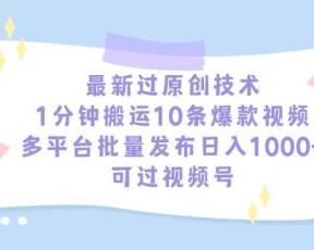 最新过原创技术,1分钟搬运10条爆款视频,多平台批量发布日入1000+,可…