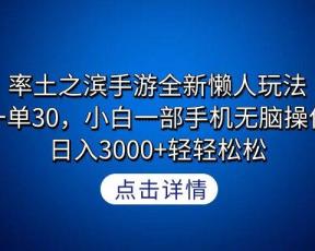 率土之滨手游全新懒人玩法,一单30,小白一部手机无脑操作,日入3000+轻…
