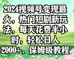 2024视频号变现最火,热门短剧新玩法,每天花费半小时,轻松日入2000+,…